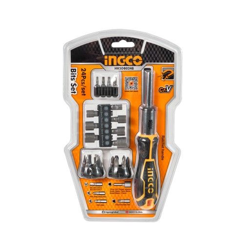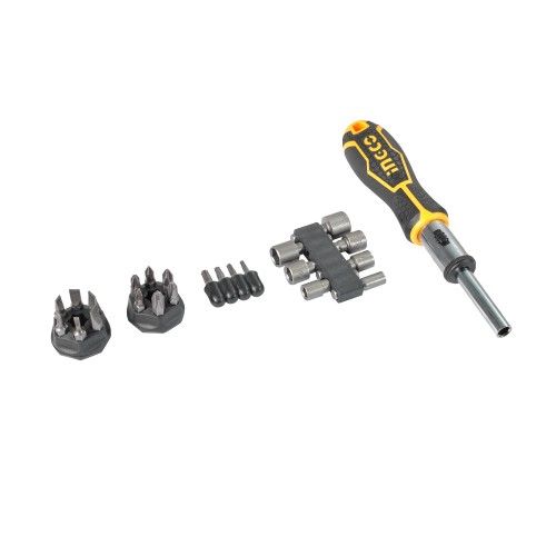 Викрутка-тріскачка з бітами й головками INGCO призначена для роботи з різними різьбовими з'єднаннями.