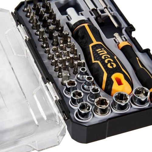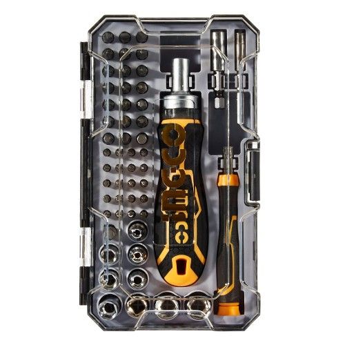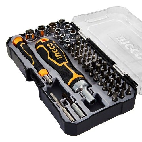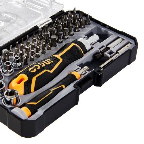 Викрутка з набором насадок і головок 55 шт INGCO призначена для роботи з різними різьбовими з'єднаннями.