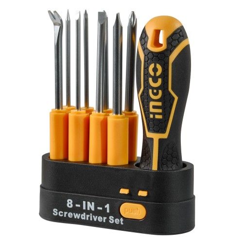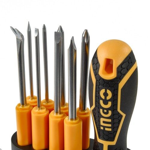 Викрутка зі змінними насадками 10 шт INGCO призначена для монтажу/демонтажу різьбових з'єднань.