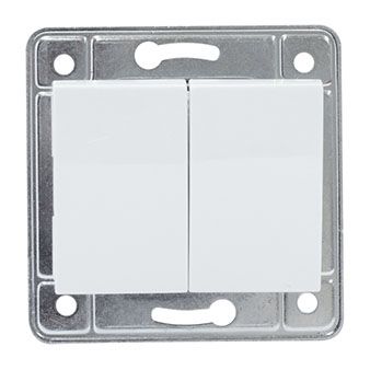 Перемикач на два напрями подвійний (прохідний) у двох кольорах. Основа з оцинкованої сталі. Мідні контакти зі срібним покриттям. Можливість управління двома джерелами світла. Функція перемикання на два напрями – можливість управління двома освітлювальними приладами з декількох точок. Матеріал корпусу – негорючий PC-пластик.