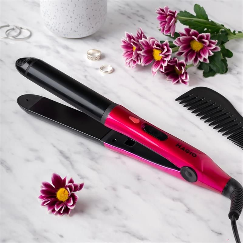 Стильний випрямляч-плойка MG-678 — це пристрій 2 в 1: він ефективно створює не тільки гладкі укладки, але і робить шикарні завитки за рахунок округлої форми пластин. З його допомогою можна швидко впоратися навіть з самими неслухняними волоссям, красиво укласти їх і надати їм потрібну форму, причому така зачіска збережеться надовго. Модель виконана в надзвичайно стильному корпусі з високоякісного пластику, що гарантує тривалий термін служби інструмент. Матеріал поверхні робочих пластин - кераміка, що впливає не тільки на кінцевий результат зачіски, але і на здоров’я волосся. Такий вид пластин завдає найменшої шкоди, швидко і рівномірно нагріваються, легко ковзають по волоссю і запобігають електризацію. Потужність приладу – 55 Вт, що сприяє швидкому нагріванню приладу.