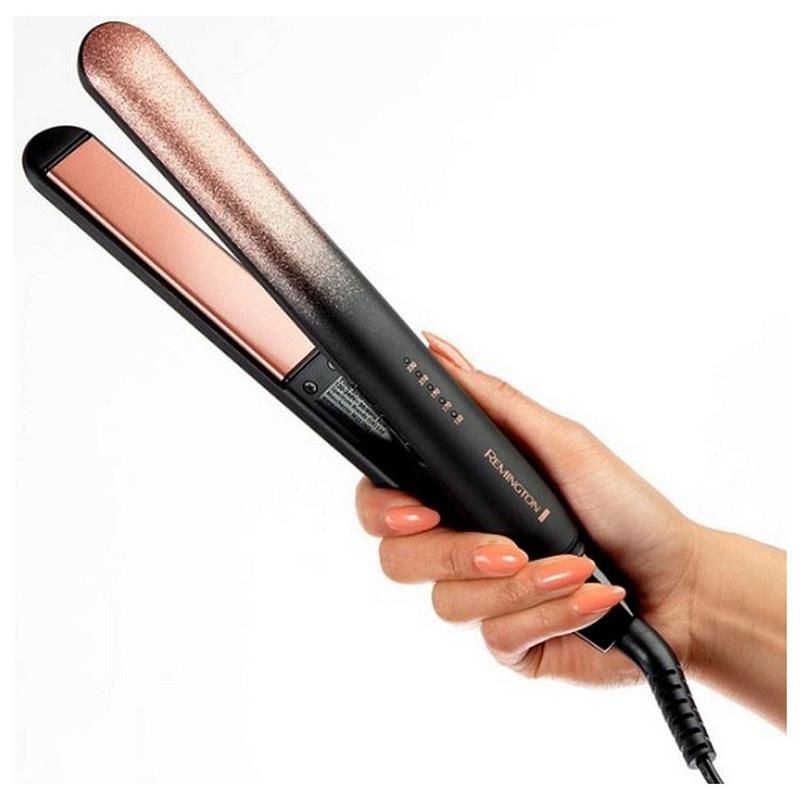 Випрямляч для волосся Remington Rose Shimmer Hair Straightener додасть вам блиску. Випрямляч вирізняється пильно-рожевим кольором і привабливими мерехтливими деталями. Він оснащений усіма функціями, необхідними для створення гладкого і рівного волосся. Готовий до роботи всього за 15 секунд, прилад з вигнутою конструкцією і тонкими пластинами перетворює випрямлення або завивку на легке задоволення. Тонке волосся добре реагує на більш низькі температурні режими, в той час, як більш товстому волоссю може знадобитися трохи більше тепла, щоб згладити перегини. Регульована температура в діапазоні 150-230°C дає змогу контролювати процес, легко підбираючи оптимальний рівень нагріву для вашого типу волосся. Чи готові ви до "мерехтіння"?