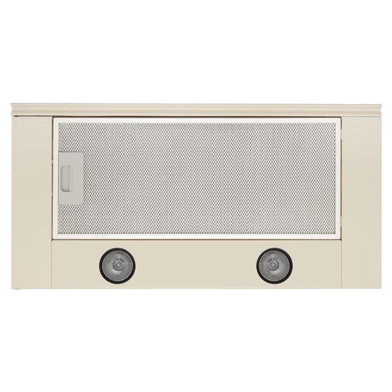 Витяжка обладнана двома галогенними лампами потужністю 35 Вт кожна. Механічне клавішне управління витяжкою є простим, зручним та надійним. На корпусі розташовані дві клавіші – перемикач швидкостей (2 швидкості) та клавіша вмикання/вимикання світла.