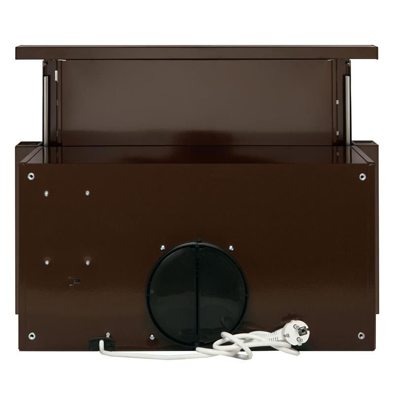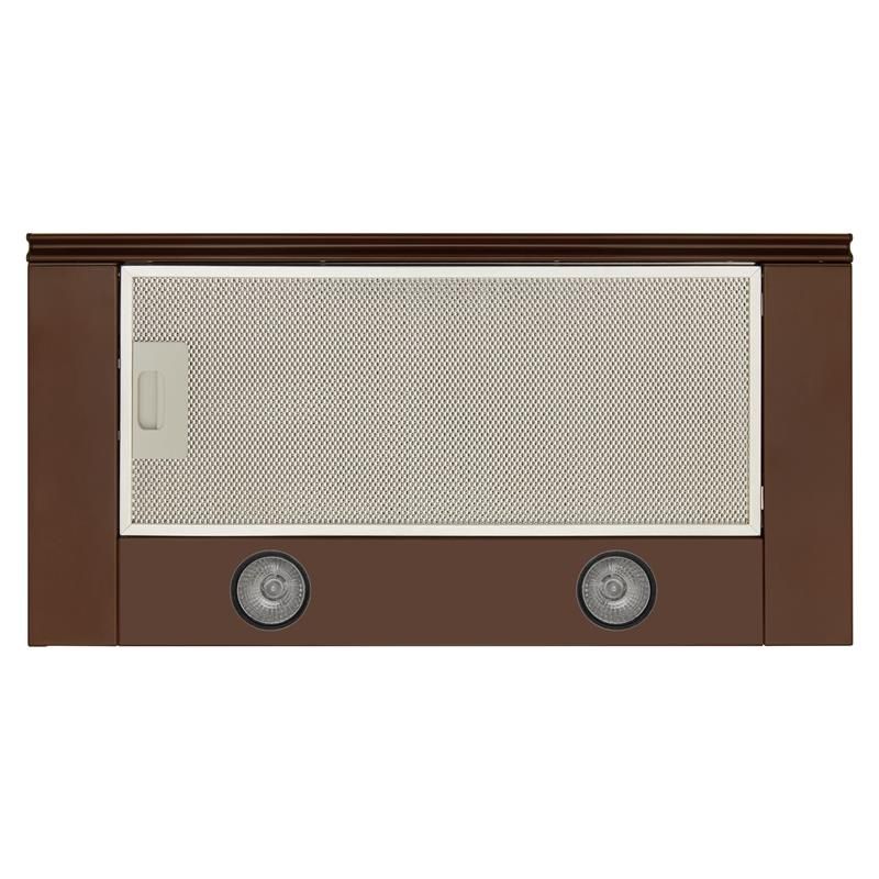 Витяжка обладнана двома галогенними лампами потужністю 35 Вт кожна. Механічне клавішне управління витяжкою є простим, зручним та надійним. На корпусі розташовані дві клавіші – перемикач швидкостей (2 швидкості) та клавіша вмикання/вимикання світла.