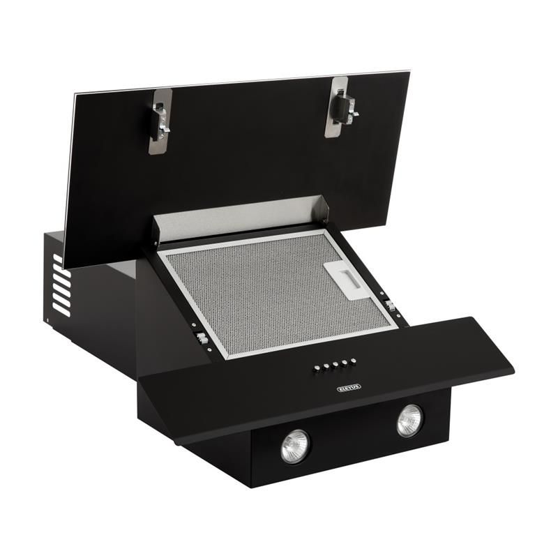 Периметральний тип втягування разом із продуктивність 700 м3/год дозволить повністю очистити приміщення кухні від пари, запаху та диму. Якщо у вашій кухні ускладнене під'єднання до вентиляційної шахти або ж шахта взагалі відсутня - режим рециркуляції, котрий доступний витяжці ELEYUS Della 700 50 BL, прекрасно впорається із очищенням повітря без потреби його відведення назовні. Щоб забезпечити режим рециркуляції слід обладнати витяжку двома вугільними фільтрами ELEYUS FW – E14 та залишити вільним вихід повітря з турбіни у простір приміщення. Витяжка обладнана двома галогенними лампами, котрі відрізняються своєю довговічністю та приємним світлом. Прилад ефективно та м'яко освітить вашу кухню і подарує безліч затишних вечорів у колі рідних. Металева частина кухонної витяжки ELEYUS Della 700 50 BL покрита високоякісною порошковою фарбою, яка захищає метал від корозії та надає привабливого зовнішнього вигляду. Панель з гартованого скла із дзеркальним ефектом не лише надає витяжці довершеного вигляду, але й робить догляд за нею легким та приємним. Механічне управління витяжки ELEYUS Della 700 50 BL є простим в користуванні та надійним, тож прослужить вам багато років, як і сама витяжка.