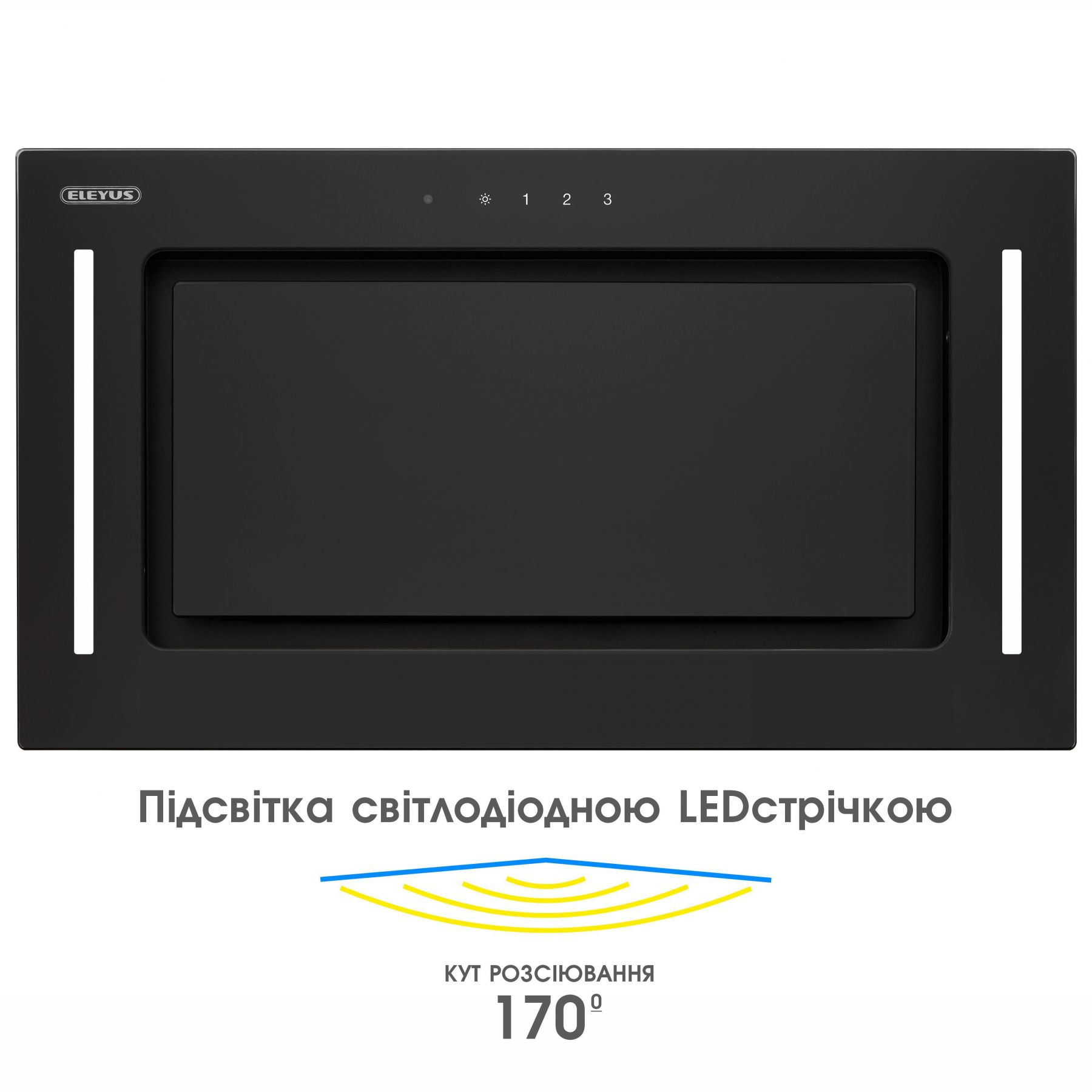 Сенсорна панель керування та пульт дистанційного керування є вагомими перевагами кухонної витяжки ELEYUS GEMINI — одне натискання та потрібний режим роботи активовано. За допомогою функції таймера відключення зручно запрограмувати автоматичне вимкнення витяжки від 15 до 90 хвилин. Освітлення ELEYUS GEMINI максимально наближене до природного та найбільш сприятливе для вашого зору, адже у витяжці вбудовані дві LED-стрічки з широким кутом розсіювання світла у 170 градусів.