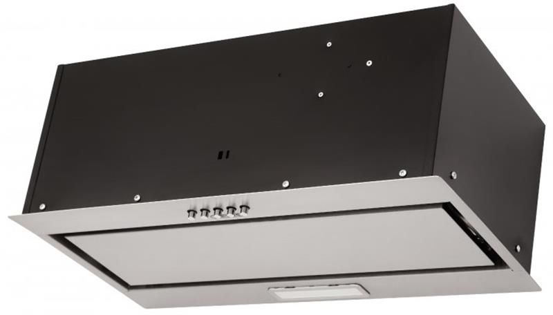 Витяжка повністю вбудовується у звичайну кухонну шафку шириною 60 см. Видимою залишається тільки передня панель з нержавіючої сталі, стійка до вологи та високих температур. Лаконічний дизайн витяжки гармонійно поєднується з кухнею та в стилі мінімалізм, хай-тек чи модерн.