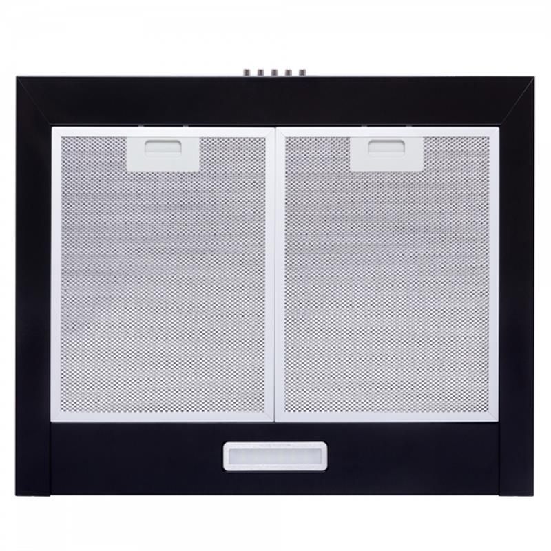 Мініатюрна витяжка, одномоторна, потужність: 700 м3/год. Ширина: 595 мм. Колір чорний. Управління механічне. 3 швидкості. Освітлення: 1 x 2 Вт LED. Алюмінієвий фільтр. Режими роботи: Відвід/рециркуляція. Рівень шуму: 52-61 Дб.