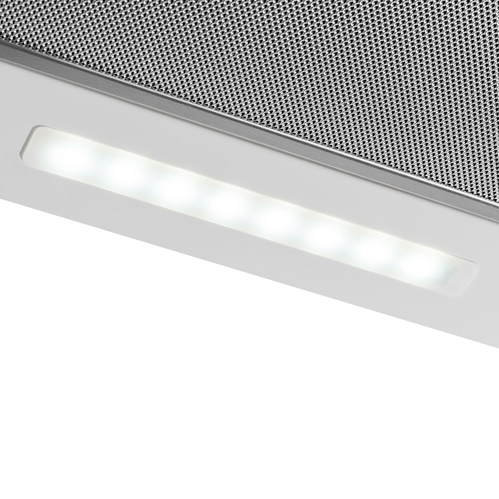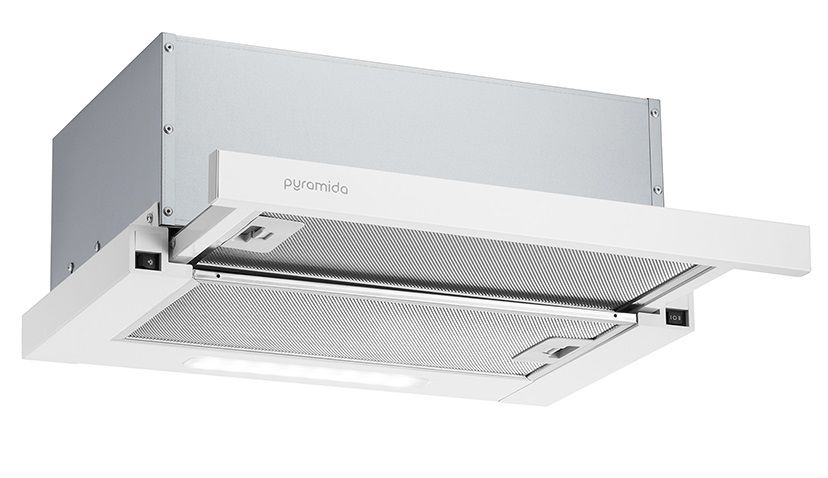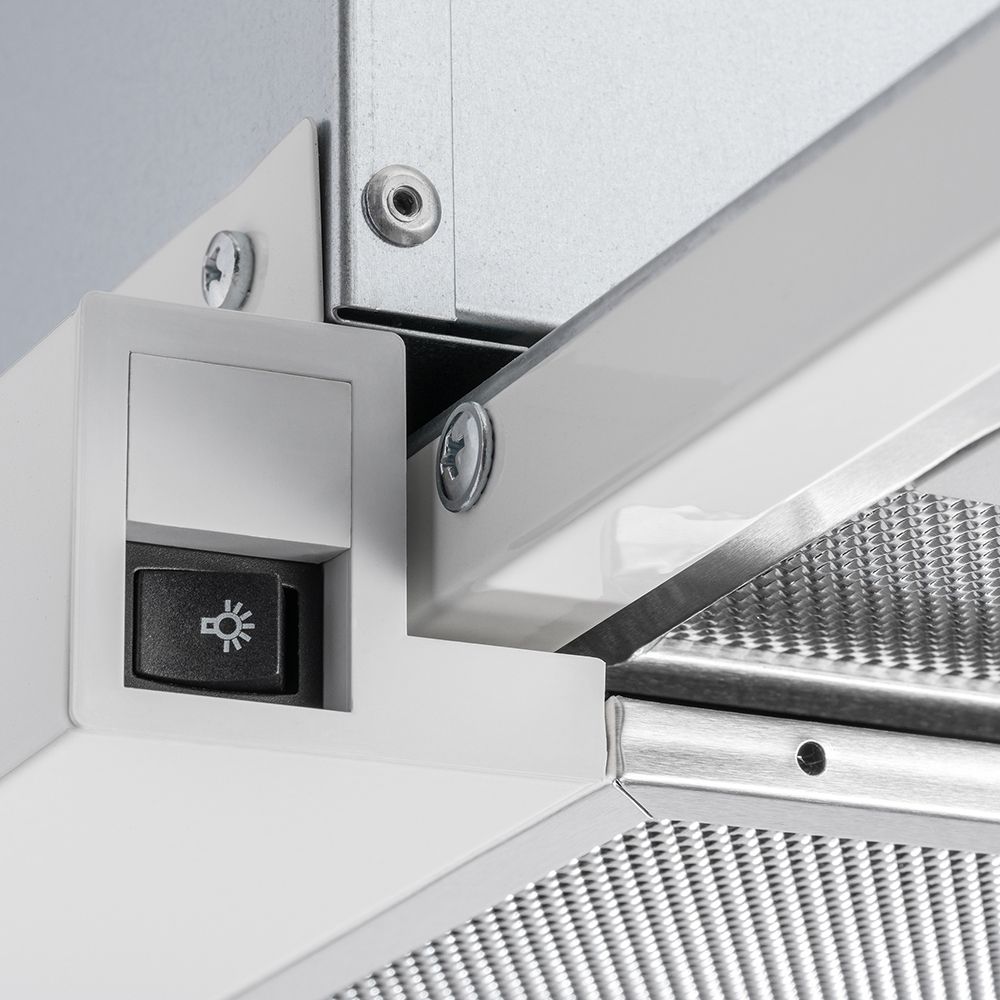 Непомітний помічник на кухні сподобається любителям мінімалізму. Витяжка повністю вбудовується в шафу й ідеально підходить для невеликих кухонь. Продуктивність 400 м3/год – цього достатньо для кухні 8-9 м2. LED-освітлення забезпечує комфортне приготування страв навіть у темний час доби. Ергономічне механічне керування дозволяє доволі легко змінювати швидкості. Витяжка може працювати в двох режимах на вибір - відведення повітря або рециркуляція.