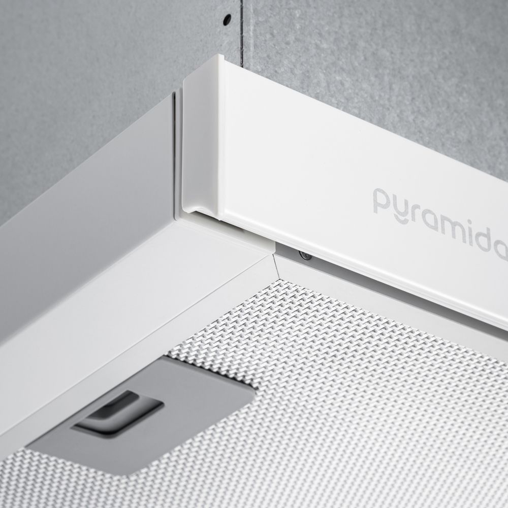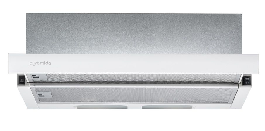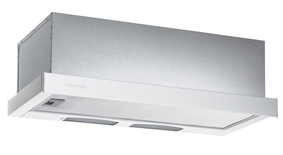 Телескопічна витяжка Pyramida TL повністю вбудовується у підвісну шафу над варильною поверхнею (або плитою), видимою залишається лише фронтальна планка висувної каретки. Саме тому витяжка підходить до будь-якого інтер"єру. Ще одна корисна деталь: в шафці, в який вбудовується витяжка, залишається місце для зберігання речей.