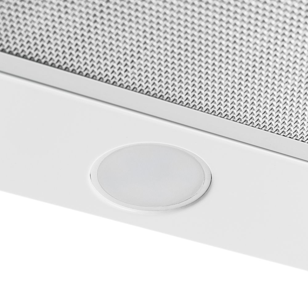 Висувна панель з другим жировим фільтром збільшує площу забору повітря і полегшує управління витяжкою. Кнопки включення швидкісних режимів і освітлення розташовані за висувною планкою.