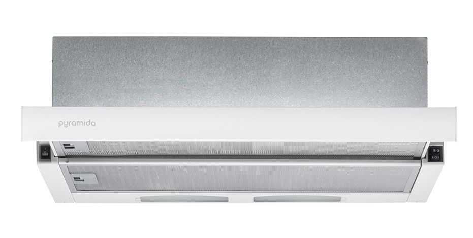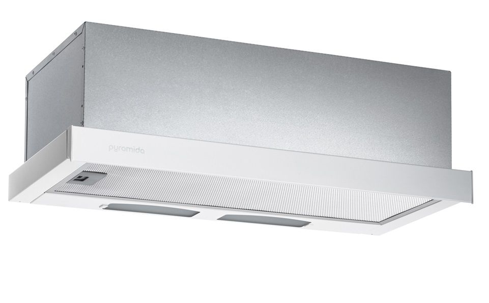 Телескопічна витяжка Pyramida TL повністю вбудовується у підвісну шафу над варильною поверхнею (або плитою), видимою залишається лише фронтальна планка висувної каретки. Саме тому витяжка підходить до будь-якого інтер"єру. Ще одна корисна деталь: в шафці, в який вбудовується витяжка, залишається місце для зберігання речей.