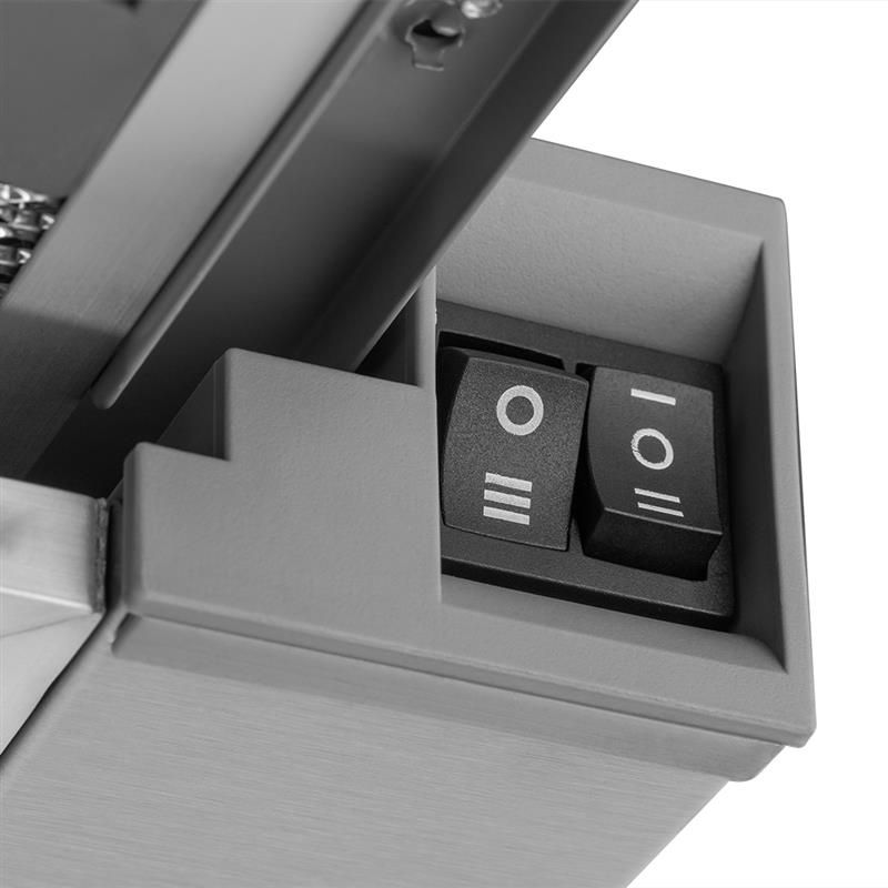 Проста й інтуїтивно зрозуміла панель управління забезпечить комфорт під час експлуатації витяжки. Ергономічні механічні клавіші допоможуть швидко перемикати швидкості та режими роботи, а також умикати підсвічування.