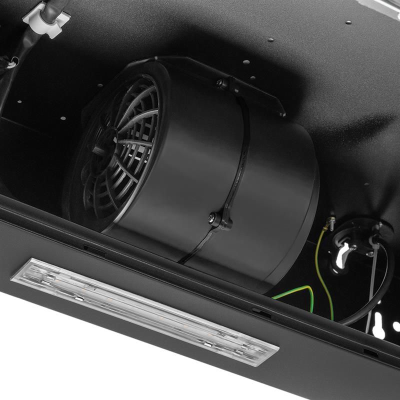 Плоска витяжка Pyramida для маленьких кухонь. Скляний декоративний козирьок допомагає скоригувати траєкторію пари під час активного приготування. Завдяки конструктивній особливості мотора, витяжка має достатню потужність, працює надійно з більшою продуктивністю 380 м3/год. Має три швидкості та два режими роботи на вибір - відведення повітря або рециркуляція. LED-освітлення забезпечує комфортне приготування страв.