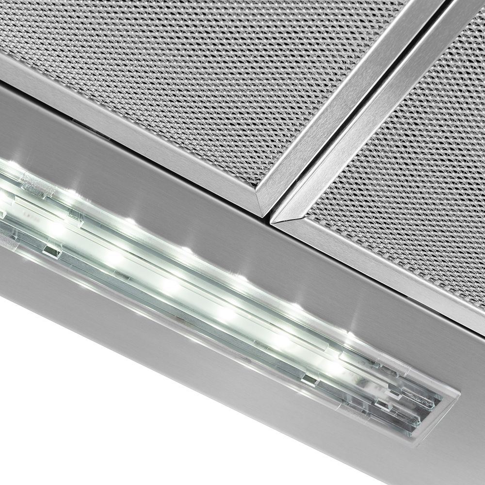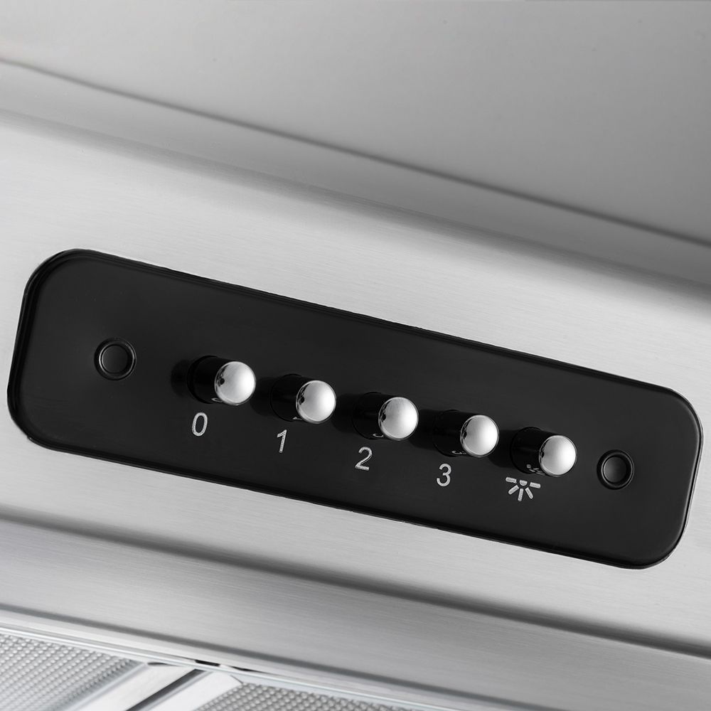 Стандартна плоска витяжка для невеликих кухонь. Скляний декоративний козирок допомагає скорегувати траєкторію пара під час активної готування. Завдяки конструктивній особливості мотору, витяжка має достатню потужність 140 Вт, працює надійно з більшою продуктивністю 380 м3/год. Має три швидкості та два режими роботи на вибір — відведення повітря або рециркуляція. LED-освітлення забезпечує комфортне приготування страв навіть у темний час доби. Ергономічне механічне керування дозволяє легко змінювати швидкості.