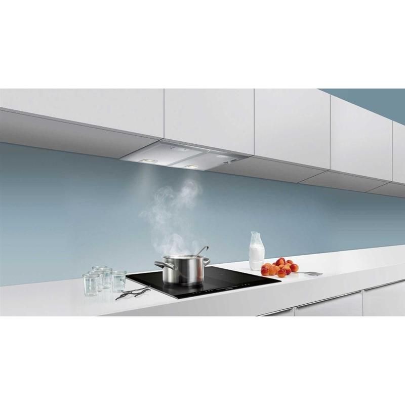 Витяжка Siemens LB55565 створена спеціально для розміщення її над варильною поверхнею. Даний елемент конструкції вбудовується в одну з шаф, розташовану прямо над плитою. Так вона захоплюватиме випаровування та жирові суспензії з ароматом їжі відразу ж, як тільки ті з'являться, не встигаючи поширитися навколо по кімнаті. У питаннях сполучності з іншим інтер'єром витяжка стане проблемою, т.к. її не видно - назовні виходить тільки частина з отвором повітря.