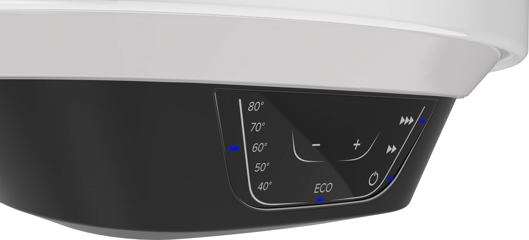 Вдале вертикальне компонування циліндричного бака ідеально підходить для тісних, вузьких приміщень (санвузол або ванна кімната в малогабаритній квартирі). Передбачено підвісний монтаж на стіну. Управління знаходиться попереду, важливий показник з урахуванням варіацій установки.