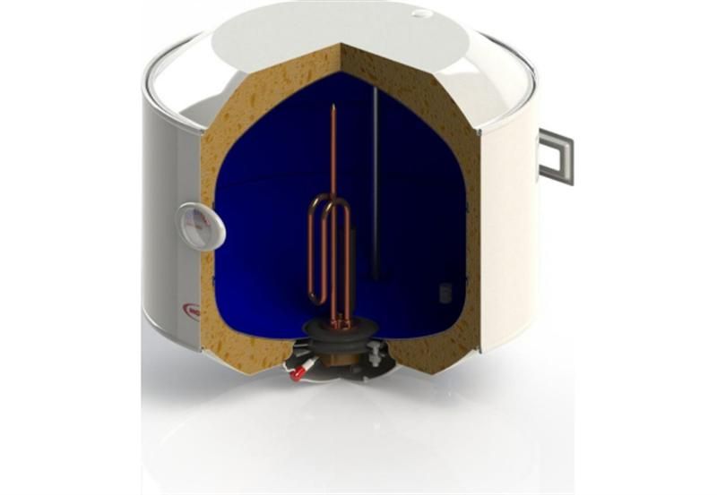 Компактний, вертикальний, циліндричний бак з високоякісного металу, що не піддається корозії, об'ємом 35 літрів забезпечить Вас та Вашу родину достатнім запасом гарячої води. За рахунок покриття в 2 шари спеціальної титанової емалі (французького виробництва) усередині металевого бака вода тривалий час не остигає і зберігає свою високу температуру, а так само захищає від корозії. Водонагрівач укомплектований теплоізоляцією, яка допомагає зберегти температуру води та позбавить Вас надмірного споживання електричної енергії.