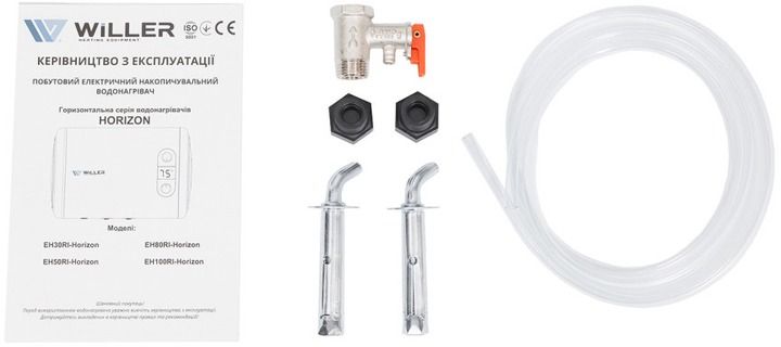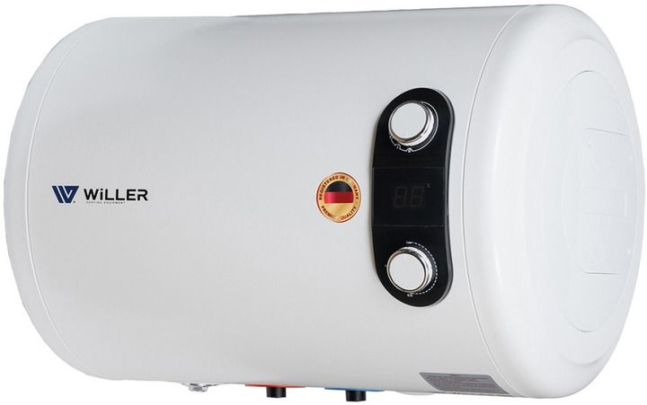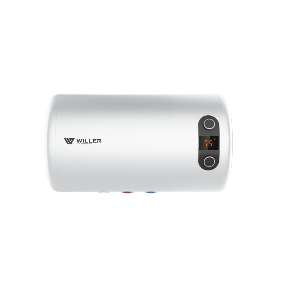 Willer EH50RI HORIZON - надійний накопичувальний електричний бойлер циліндричної форми об’ємом 50 літрів з горизонтальним розташуванням. Оснащений подвійним зануреним (мокрим) нагрівальним елементом загальною потужністю 2,0 кВт. Внутрішній бак, виготовлений зі сталі, покритої титанокварцевою емаллю, і збільшений захисний магнієвий анод забезпечують тривалий термін експлуатації. Призначений для встановлення в місцях, де недостатньо місця для вертикальних бойлерів та під стелею.
