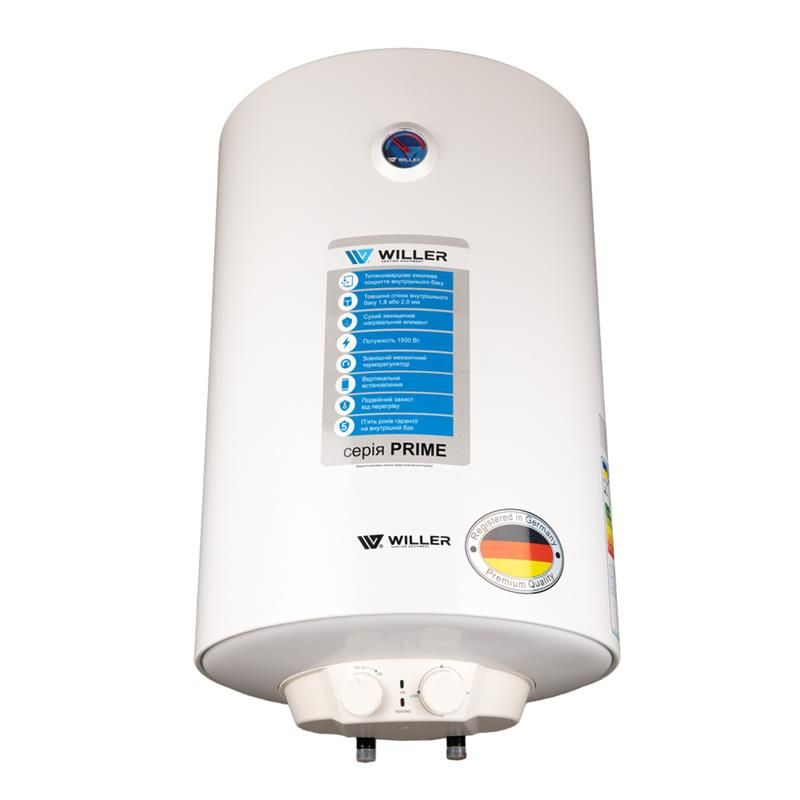 Надійний накопичувальний електричний водонагрівач WILLER EV100DR-Prime циліндричної форми об’ємом 100 літрів. Оснащений сухим нагрівальним елементом із нержавіючої сталі, потужністю 1500 Вт. Внутрішній бак, виготовлений із сталі, покритої титанокварцевою емаллю, та захисний магнієвий анод забезпечують тривалий термін експлуатації. Сфера застосування – нагрівання води для побутових цілей, для душу та ванної. Для використання у будинку, квартирі, на дачі.