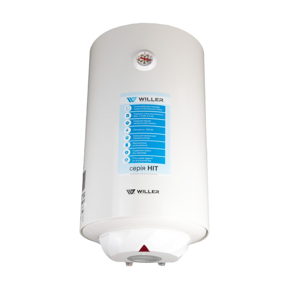 Надійний накопичувальний електричний водонагрівач WILLER EV30R-HIT циліндричної форми об’ємом 30 літрів. Оснащений мідним занурювальним (мокрим) нагрівальним елементом потужністю 1,5 кВт. Внутрішній бак, виготовлений зі сталі, покритої титанокварцевою емаллю, і захисний магнієвий анод забезпечують тривалий термін експлуатації. Сфера застосування - нагрівання води для побутових цілей, для душу і ванни. Для використання в будинку, квартирі, на дачі.