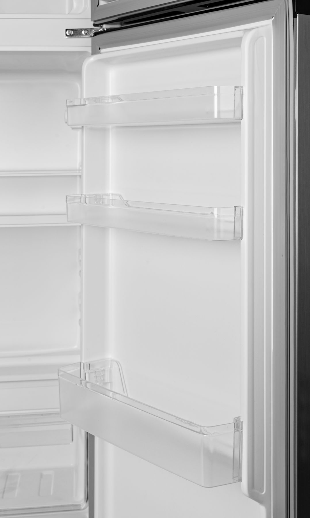 У холодильній шафі об'ємом 168 л розташовані дві полиці зі скла. Вони розміщують на собі невеликий продуктовий склад і захищають нижні полиці від пролитих продуктів або крихт. Один пластиковий ящик з відмінною загальною температурою і підвищеною вологістю, для зберігання свіжих овочів і фруктів, а також зелені. У морозильній камері на 37 літрів є скляна морозильна полиця, що розташована зверху над продуктовими полицями. Дверна стійка оснащена трьома додатковими нішами-підставками із пластику.