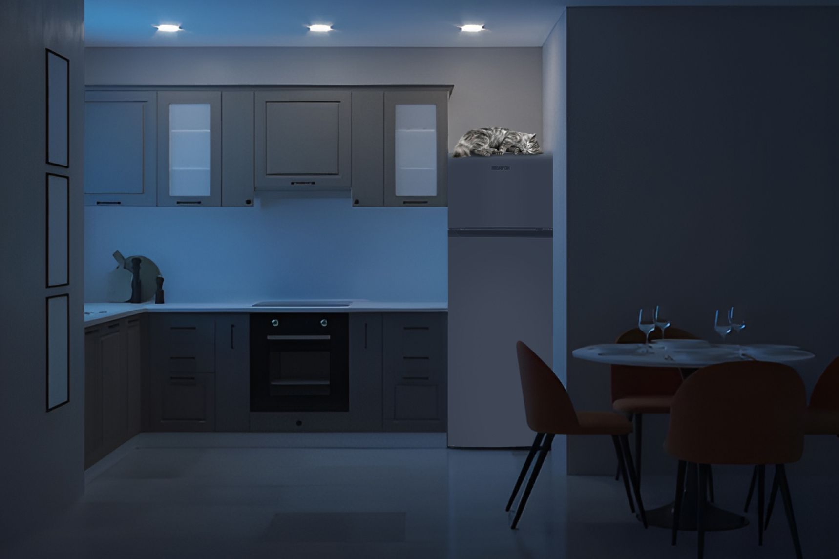 Холодильник оснащений одними дверима з втопленою (прихованою) ручкою для легкого відкривання і стильного дизайну (всі механізми заховані всередині). Дверна панель і корпус у білому кольорі, створюють враження чистоти. Внутрішнє освітлення допомагає швидко виявити продукти, які починають псуватися і викинути їх.
