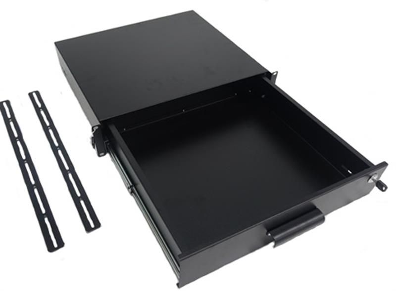 Зручний висувний ящик для зберігання різних речей: документації, інструкцій, аксесуарів, розхідних матеріалів та інших необхідних речей. Встановлюється в усі моделі 19" серверних стійок глибиною від 400мм. до 750 мм. Замикається на ключ. Для встановлення необхідно 8 комплектів кріплення.