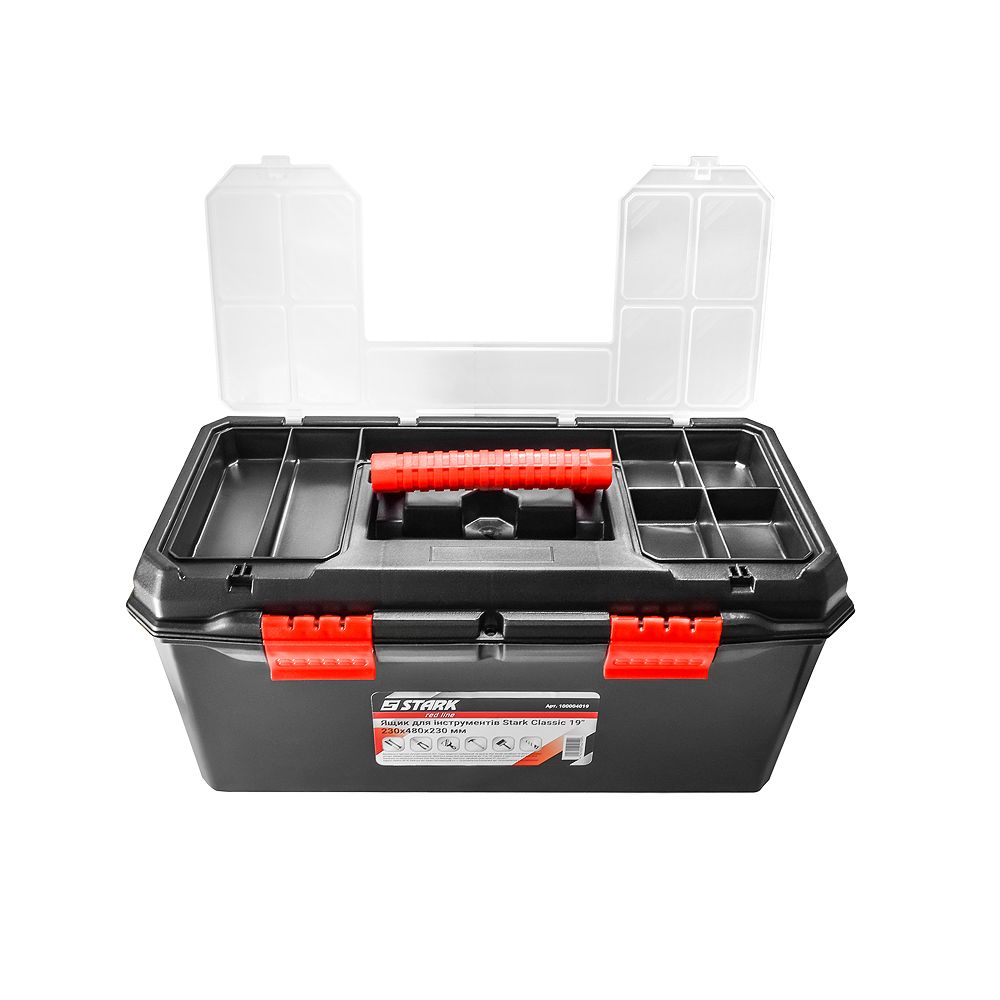 Ящики для інструмента STARK Classic - універсальний кейс з пластиковими застібками. На кришці розміщений зручний органайзер для зберігання метизів, дюбелів, дрібних будівельних і побутових елементів. Ідеально підійде організації інструменту будинку, на дачі, в гаражі.