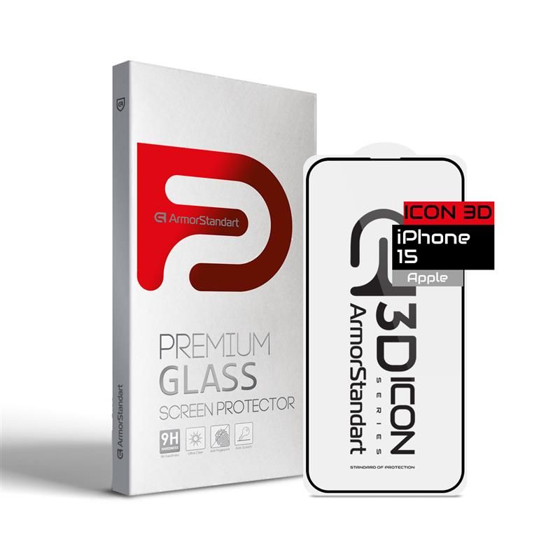 Захисне скло Armorstandart Icon 3D для Apple iPhone 15 Black (ARM68213)