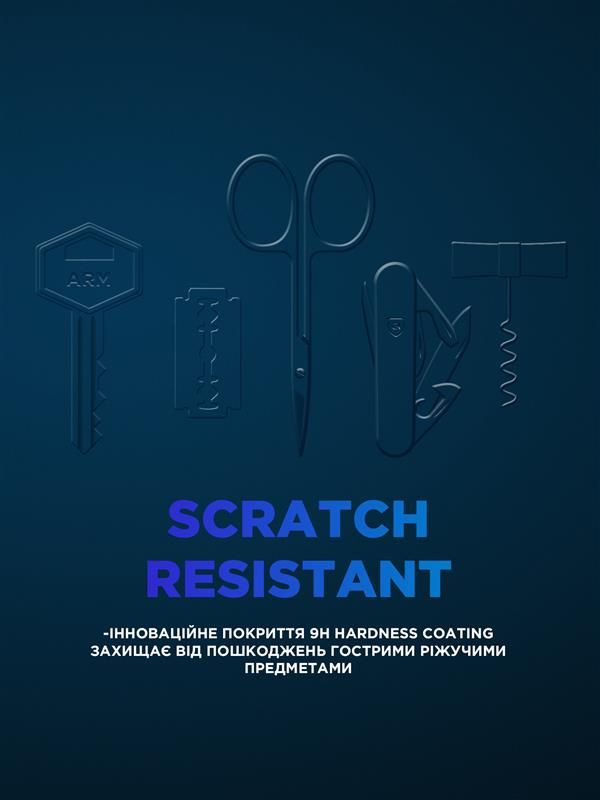 У виробництві використовується високоякісне загартоване скло, завдяки покращеній технології hardness coating, воно менш схильне до виникнення подряпин і пошкоджень гострими предметами, при цьому залишаючись ультратонким і міцним, має гладку поверхню і не потовщує ваш телефон.