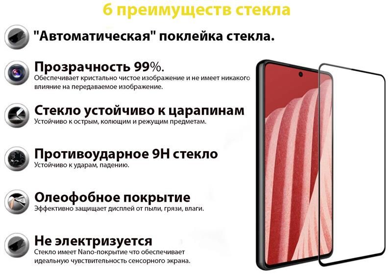 Колір скла - скло має колір який співпадає з кольором вашого смартфону, при установці не помітно наявність скла на пристрої.