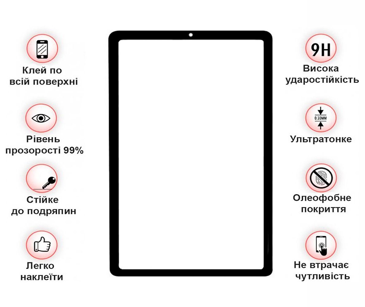 Надміцне, ультратонке і абсолютно прозоре захисне скло забезпечить збереження екрану вашого планшета. Протектор із загартованого скла принципово відрізняється від традиційних захисних плівок і перевершує їх по ряду ключових характеристик: