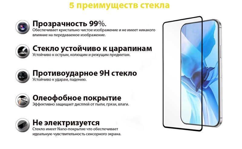 Колір скла - скло має колір який співпадає з кольором вашого смартфону, при установці не помітно наявність скла на пристрої.