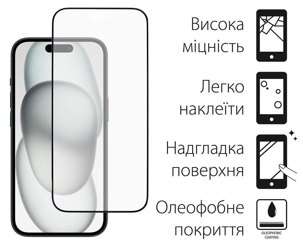 Захисне скло Dengos для Apple iPhone 15 Black Full Glue (TGFG-318)