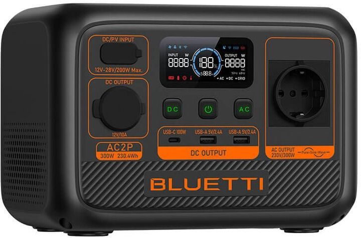 BLUETTI AC2P — це надзвичайно легке та зручне рішення для зберігання енергії. Завдяки ємності 230 Вт·год і вихідній потужності 300 Вт він може задовольнити більшість потреб в електроенергії основних пристроїв. Зарядка до 80% всього за 45 хвилин, що робить його ідеальним компаньйоном для активного відпочинку, екстреної допомоги, подорожей на автофургонах тощо.