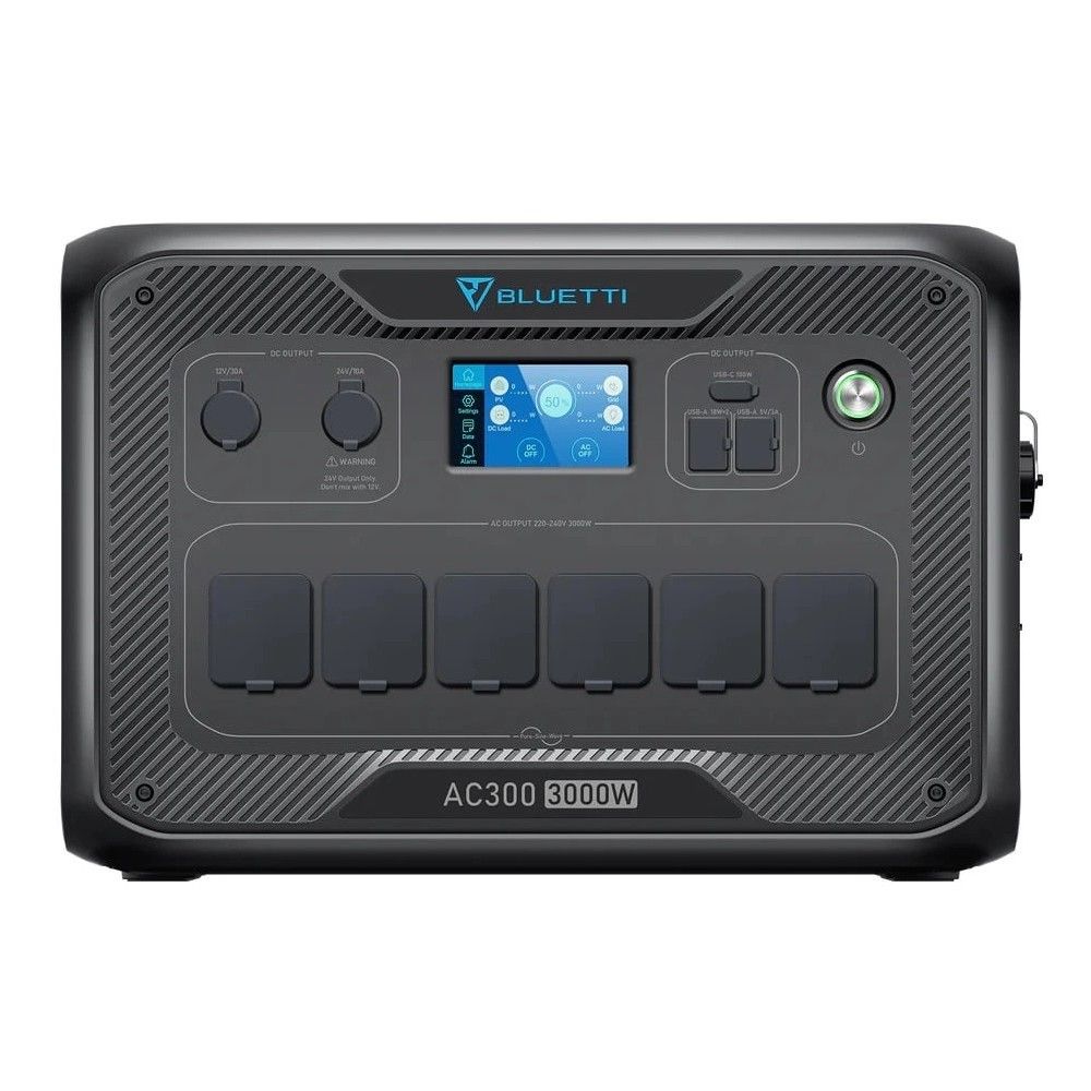 Оснащений чистим синусоїдальним інвертором потужністю 3000 Вт та можливістю регулювання швидкості заряджання змінного струму (блок живлення не потрібен, достатньо одного зарядного кабелю). Система живлення AC300 також може заряджатися потужністю від 1800 Вт до 3000 Вт через настінні розетки відповідно до ваших потреб.