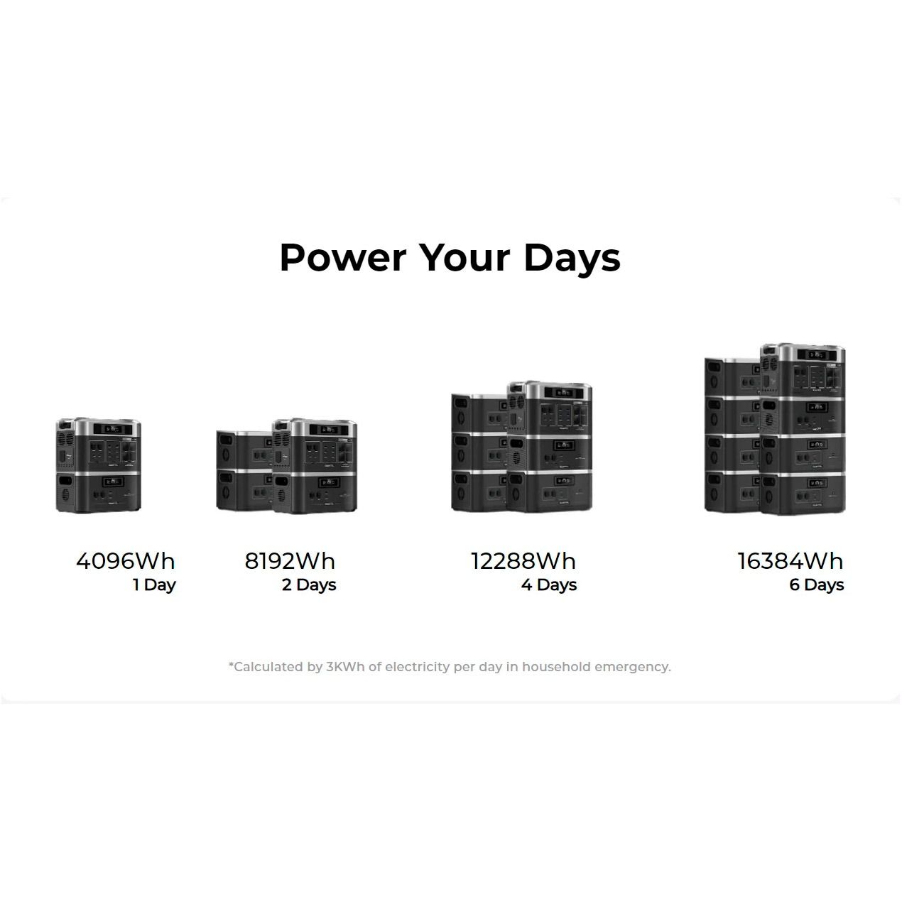 Об’єднайте BP2000 Pro з 7 батареями розширення B2000 паралельно, щоб досягти 16 кВт/год, що може забезпечити живлення протягом 1-6 днів під час перебоїв з електрикою. Ідеально підходить для домашнього резервного живлення, караванів, подорожей на природі або навіть повсякденного використання.