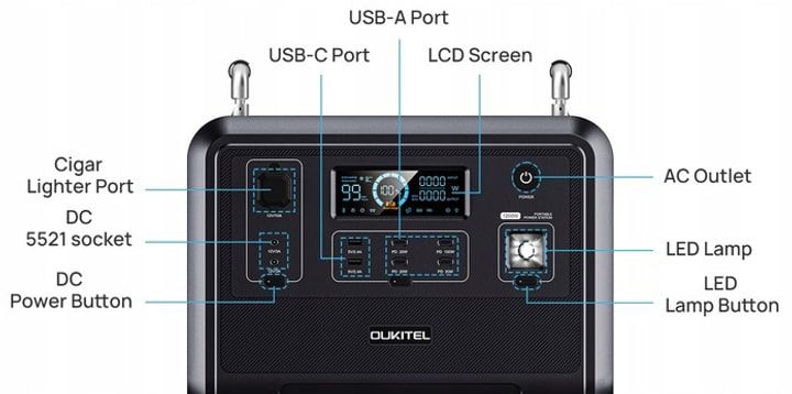 P1201 від Oukitel універсальний та потужний помічник для живлення пристроїв у будь-яких умовах. Завдяки ємності акумулятора 960 Вт·ч, вона стане надійним джерелом енергії вдома, в офісі або у віддалених від цивілізації куточках світу. Потужність 1200 Вт (максимальна 2400 Вт) дозволяє підключати холодильники, кавоварки, побутову техніку. Ефективна система охолодження запобігає перегріву акумулятора навіть за високого навантаження.