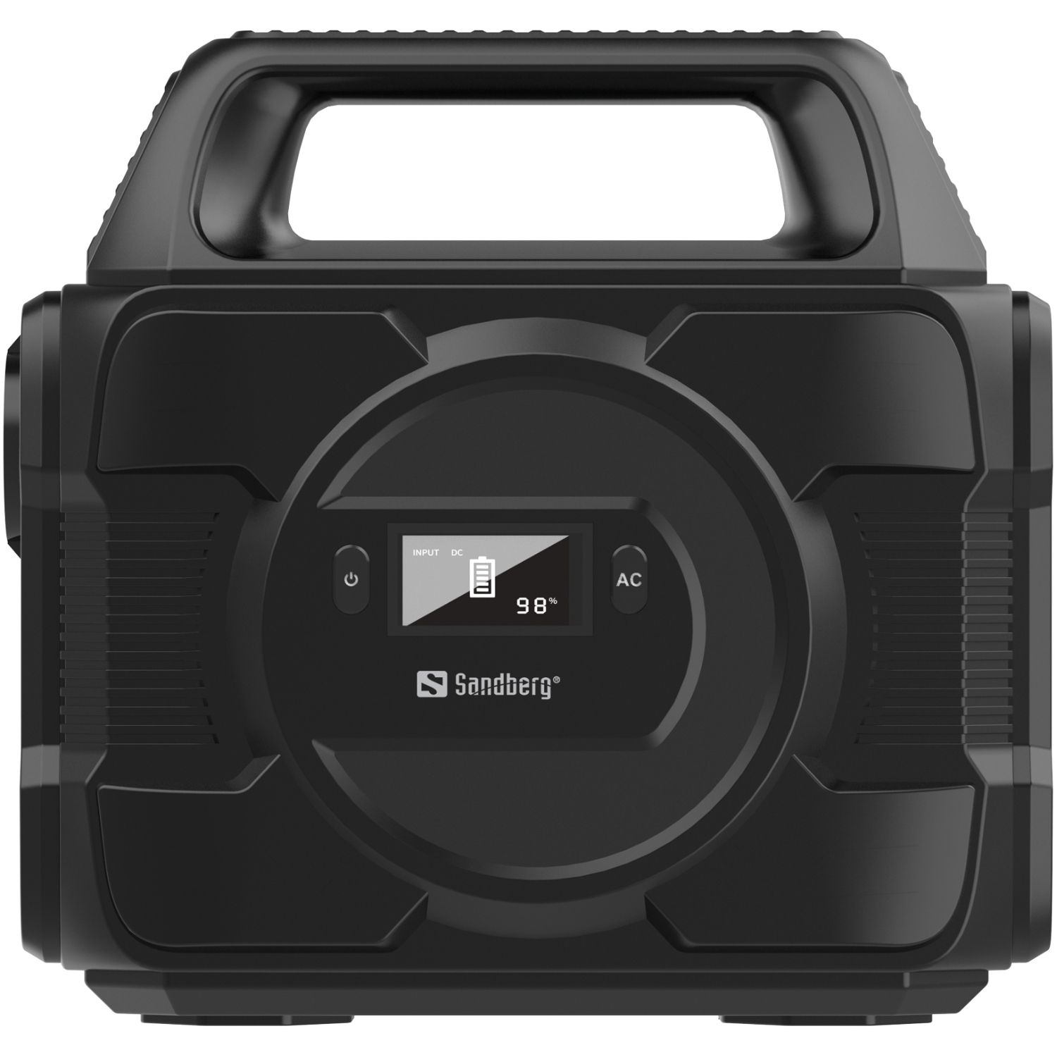 Поповнити заряд електростанції Sandberg AC 300 (288 Вт/г) 300W можна від електромережі, через порт USB-C або від автомобільного прикурювача. LED-дисплей, розташований на передній панелі корпусу, сповіщатиме про поточний стан заряду станції.