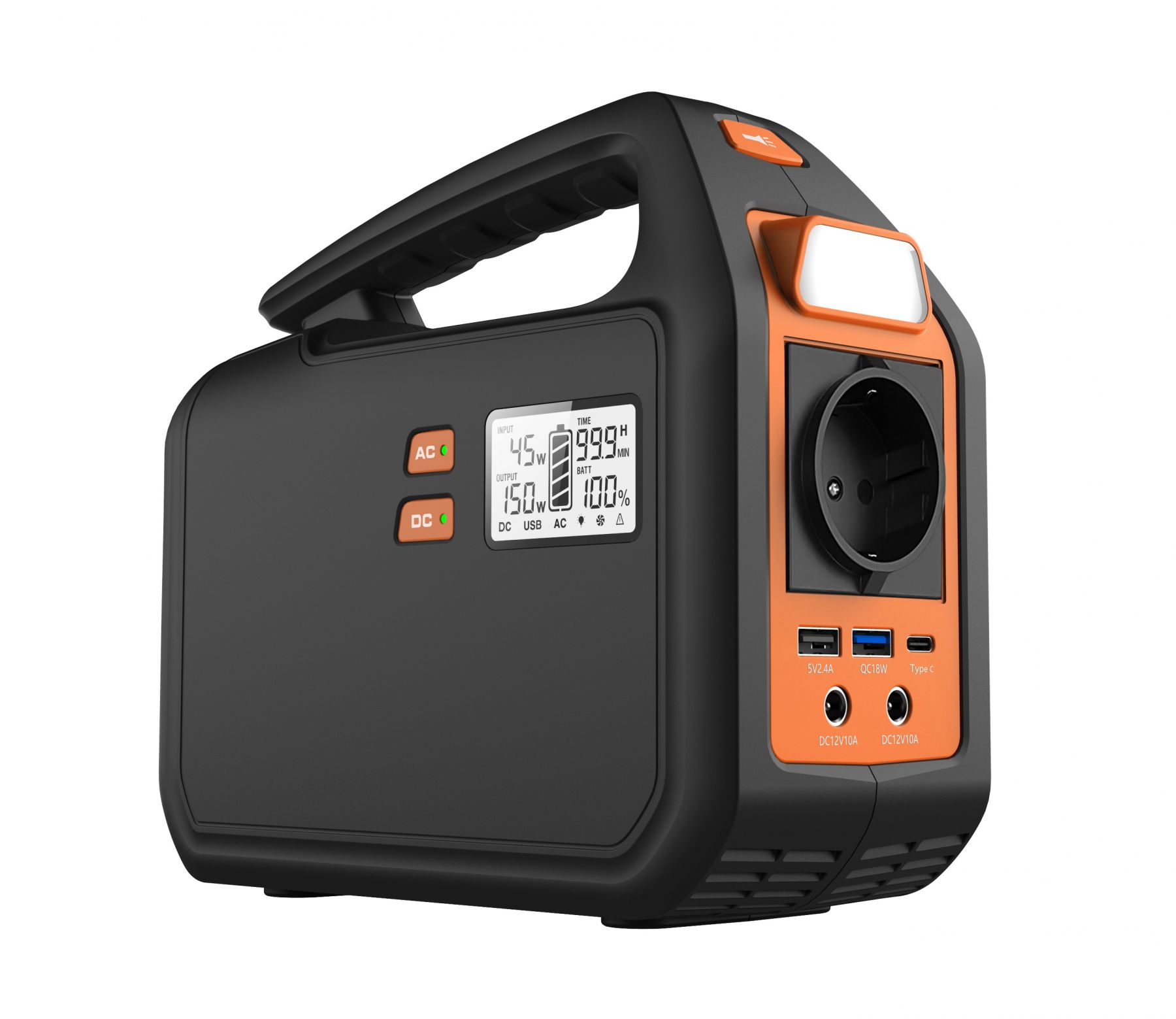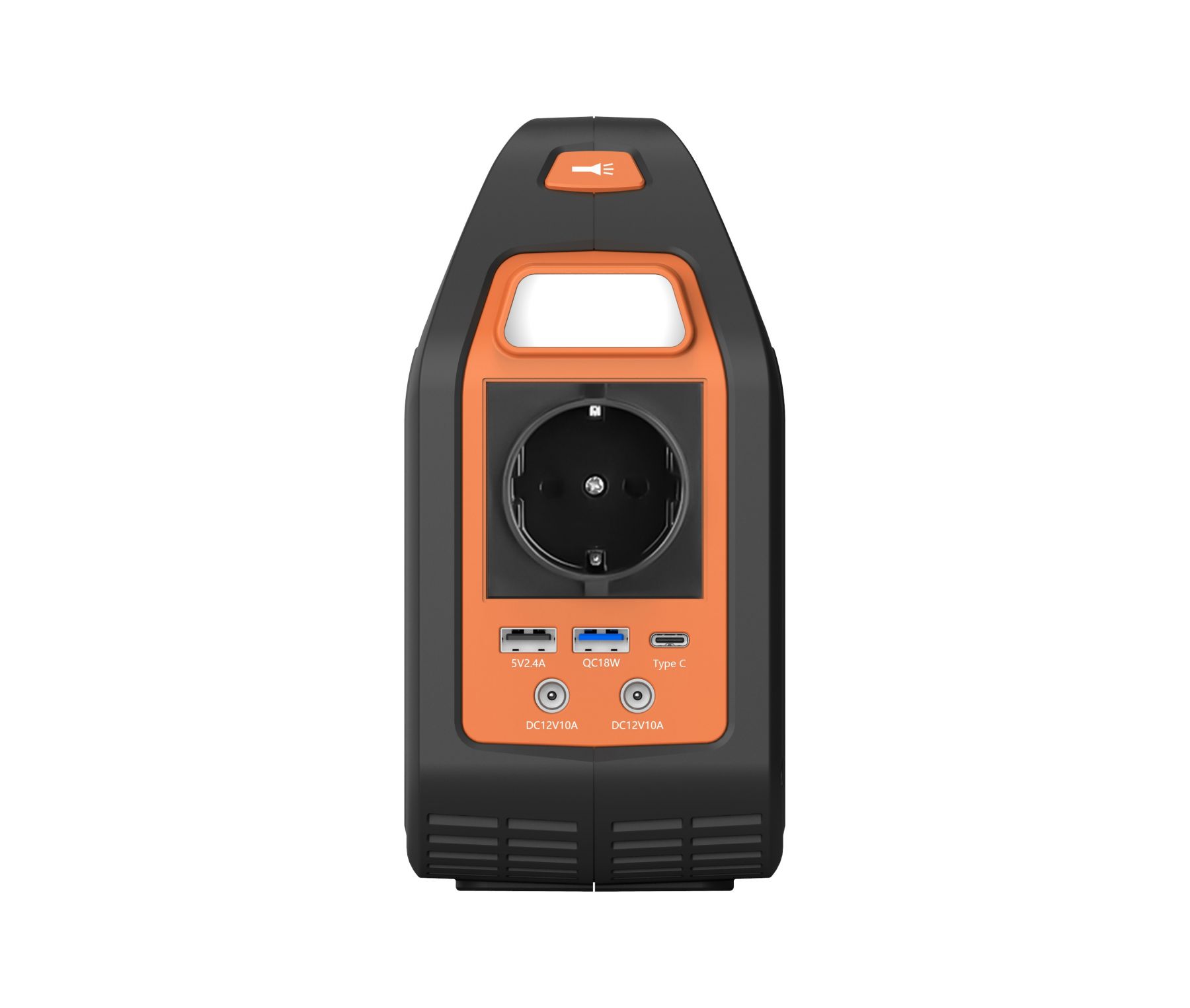 Універсальна зарядна станція для дому, дачі, відпочинку на природі. Може бути джерелом живлення для мережевих приладів, а також заряджати дрібну портативну техніку (телефони, планшети, блютус колонки) в режимі повербанка. Зарядна станція забезпечена монохромним LCD-дисплеем для відображення поточної інформації про режим роботи: відображається рівень заряду станціі, час роботи до повної розрядки, який автоматично розраховується на основі заряду батареї та потужності споживання підключених приладів в режимі реального часу, інформація про помилку якщо рівень споживання приладів вищий за потужність станції. Зарядна станція побудована на базі літій-іонних акумуляторів, завдяки чому вона має великий ресурс роботи, відсутня саморозрядка, та ефект пам’яті.