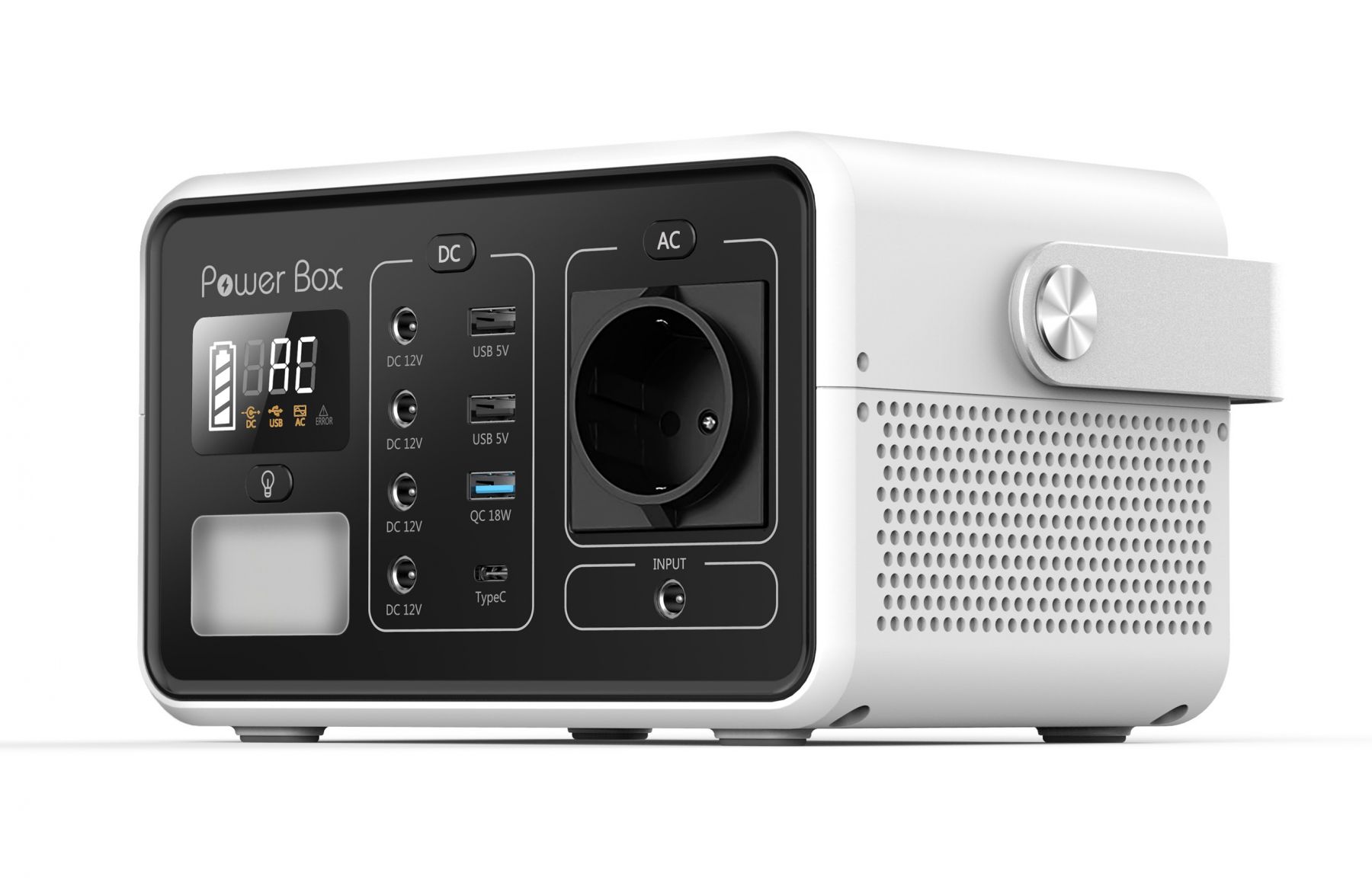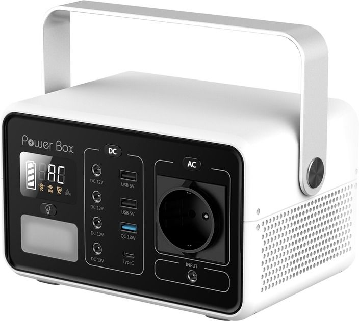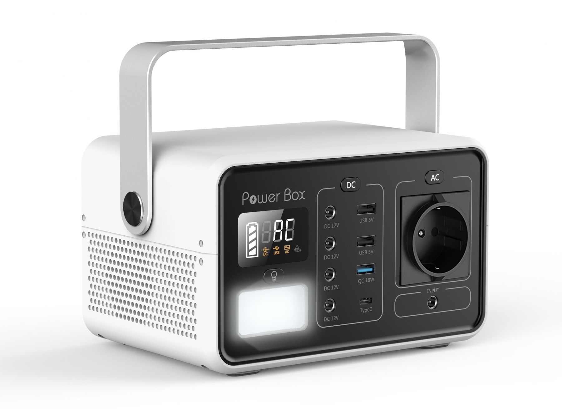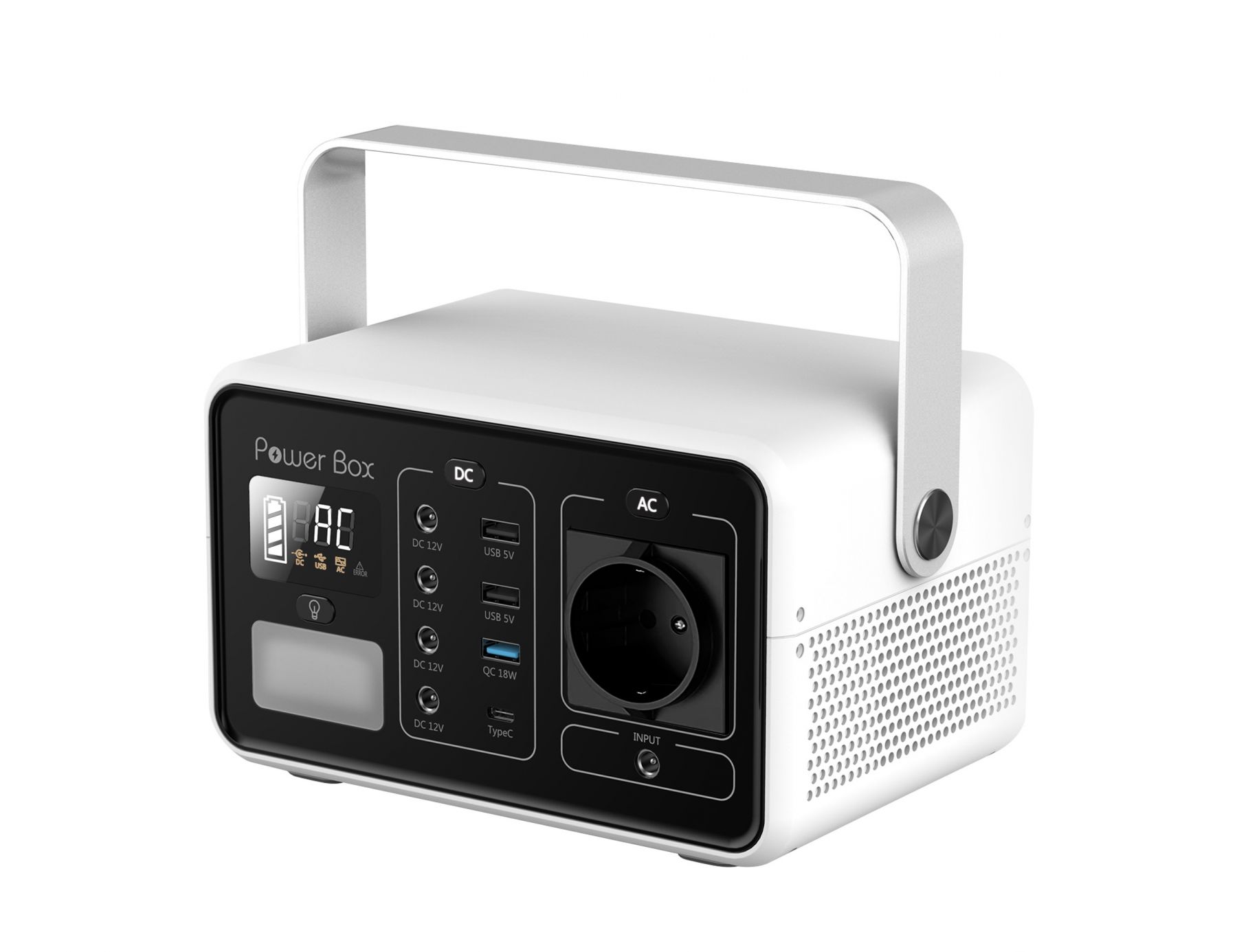 Універсальна зарядна станція для дому, дачі, відпочинку на природі. Може бути джерелом живлення для мережевих приладів, а також заряджати дрібну портативну техніку (телефони, планшети, блютус колонки) в режимі повербанка. Зарядна станція забезпечена монохромним LCD-дисплеем для відображення поточної інформації про режим роботи: відображається рівень заряду станціі, час роботи до повної розрядки, який автоматично розраховується на основі заряду батареї та потужності споживання підключених приладів в режимі реального часу, інформація про помилку якщо рівень споживання приладів вищий за потужність станції. Зарядна станція побудована на базі літій-іонних акумуляторів, завдяки чому вона має великий ресурс роботи, відсутня саморозрядка, та ефект пам’яті.