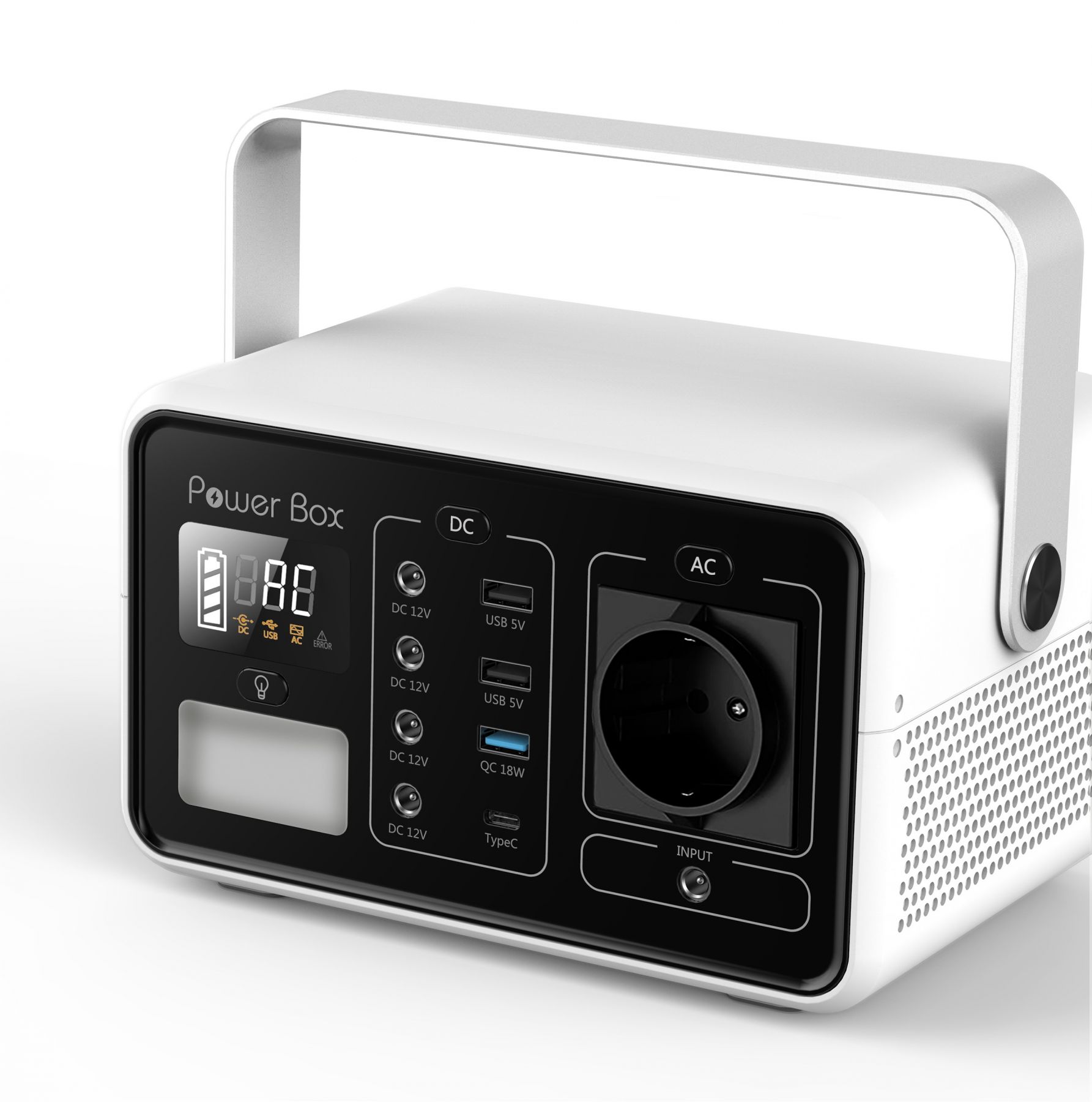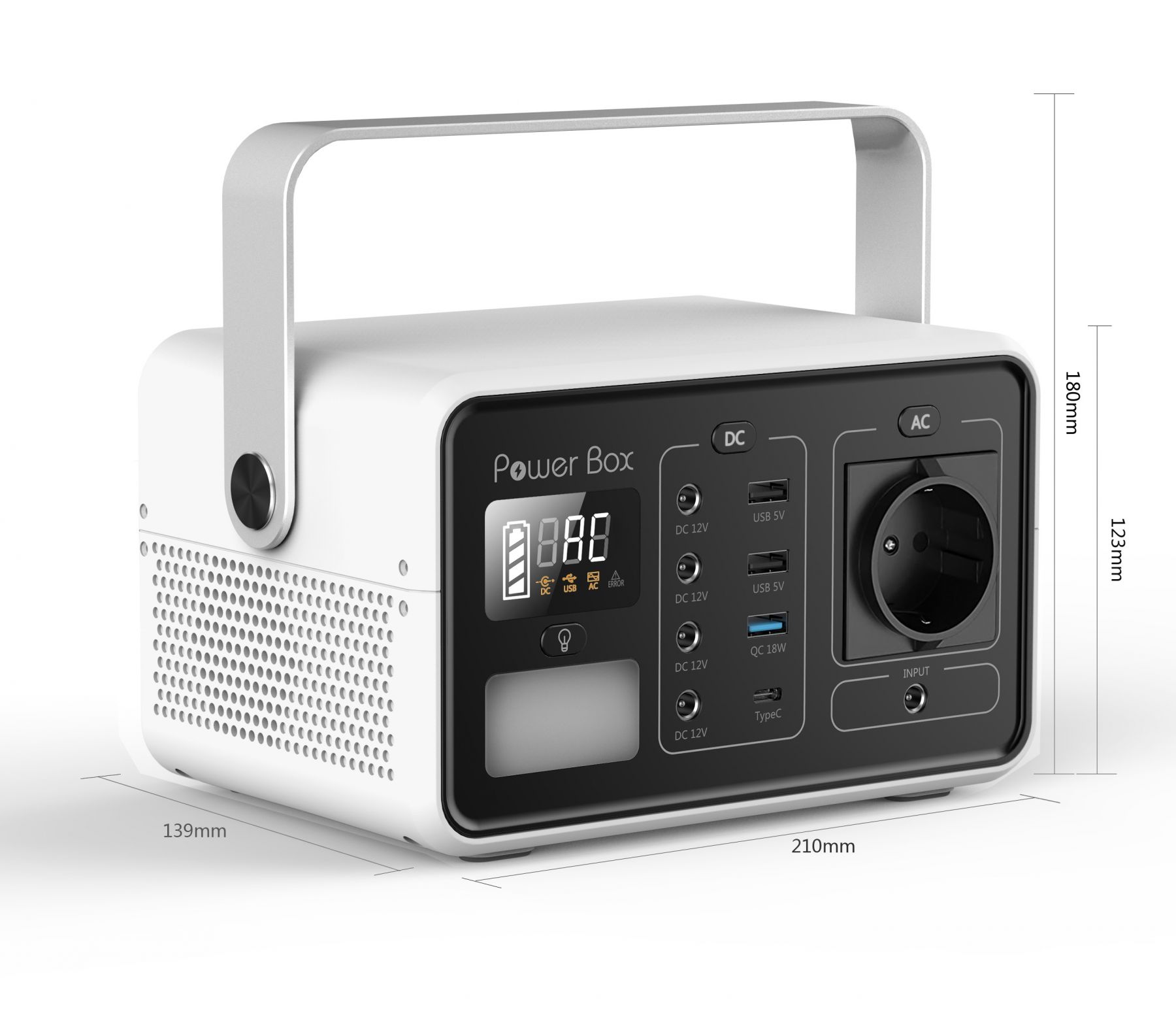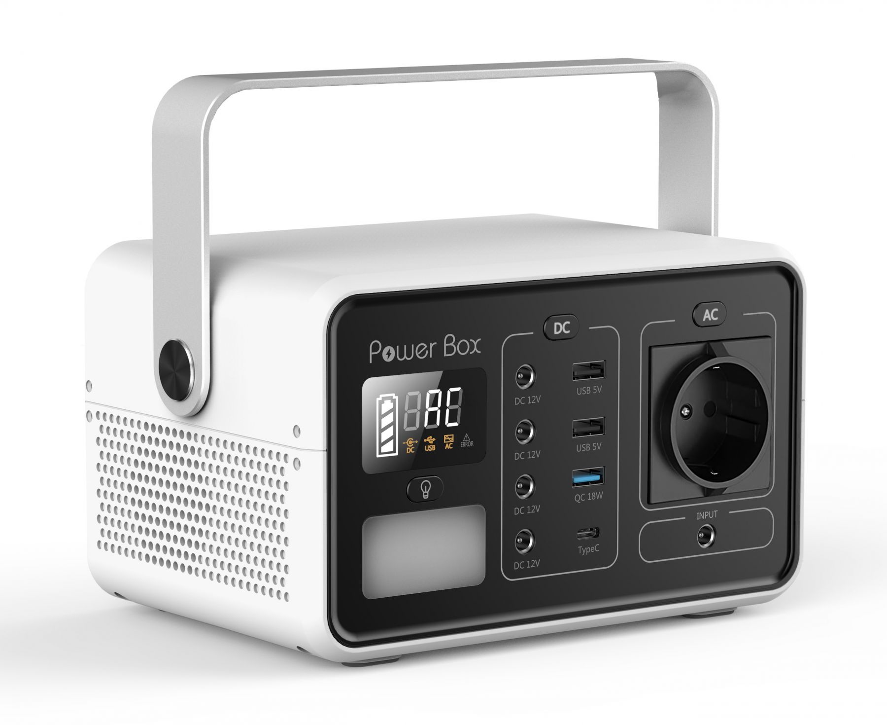 Універсальна зарядна станція для дому, дачі, відпочинку на природі. Може бути джерелом живлення для мережевих приладів, а також заряджати дрібну портативну техніку (телефони, планшети, блютус колонки) в режимі повербанка. Зарядна станція забезпечена монохромним LCD-дисплеем для відображення поточної інформації про режим роботи: відображається рівень заряду станціі, час роботи до повної розрядки, який автоматично розраховується на основі заряду батареї та потужності споживання підключених приладів в режимі реального часу, інформація про помилку якщо рівень споживання приладів вищий за потужність станції. Зарядна станція побудована на базі літій-іонних акумуляторів, завдяки чому вона має великий ресурс роботи, відсутня саморозрядка, та ефект пам’яті.