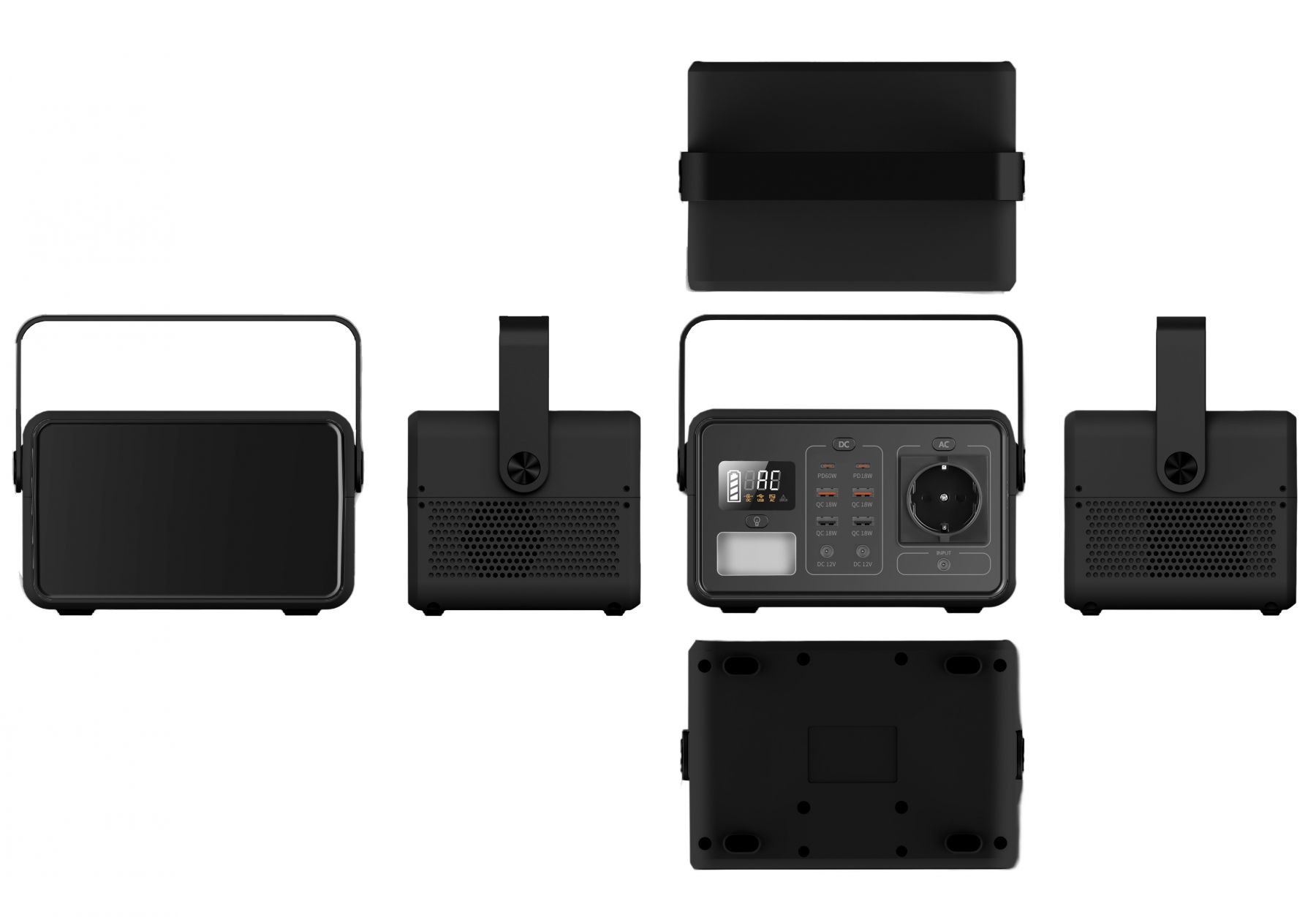 Універсальна зарядна станція для дому, дачі, відпочинку на природі. Може бути джерелом живлення для мережевих приладів, а також заряджати дрібну портативну техніку (телефони, планшети, блютус колонки) в режимі повербанка. Зарядна станція забезпечена монохромним LCD-дисплеем для відображення поточної інформації про режим роботи: відображається рівень заряду станціі, час роботи до повної розрядки, який автоматично розраховується на основі заряду батареї та потужності споживання підключених приладів в режимі реального часу, інформація про помилку якщо рівень споживання приладів вищий за потужність станції. Зарядна станція побудована на базі літій-іонних акумуляторів, завдяки чому вона має великий ресурс роботи, відсутня саморозрядка, та ефект пам’яті.