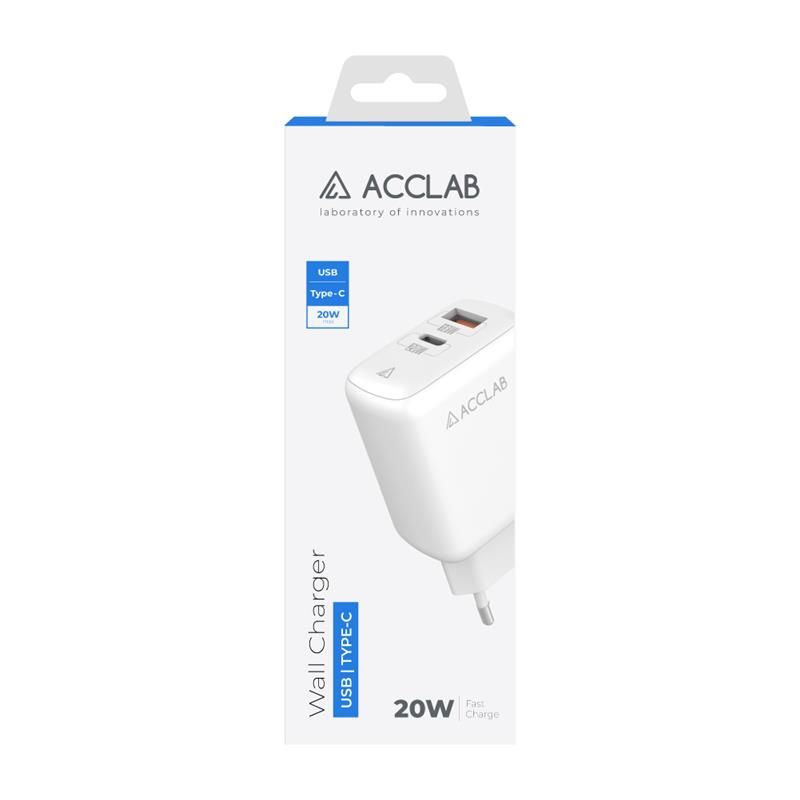 Зарядний пристрій AccLab AL-TC220 (1xUSB, 1xType-C) White (1283126556494)