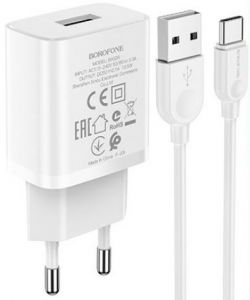 Зарядний пристрій Borofone BA52A Gamble (1USB 2.1A) White (BA52ACW) + кабель Type-C