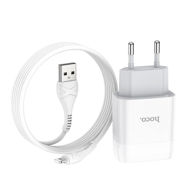 Зарядний пристрій Hoco C73A Glorious (2USB, 2.4А) White (6931474713056) + кабель Lightning