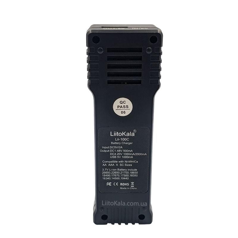 Зарядний пристрій LiitoKala Lii-100C – оновлена версія універсального одно-канального зарядного пристрою LiitoKala Lii-100 з можливістю вибору струму заряду до 2А та встановлення акумуляторів довжиною до 72мм, тут так само як і у попередньої версії є функція Power Bank і воно всіма видами циліндричних акумуляторів різного хімічного складу - NiCd, NiMH, Li-ion і практично всіх типорозмірів акумуляторів АА, ААА, С (R14), A, SС, 14500, 16340, 18350, 18650, 260