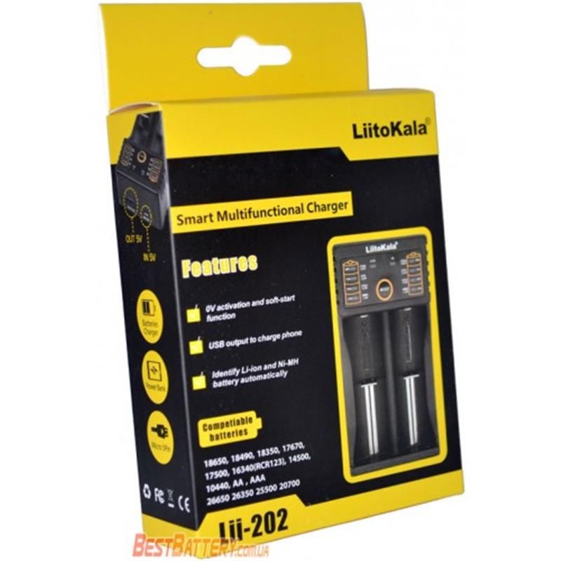 LiitoKala Lii 202 Smart Universal Charger - універсальний зарядний пристрій з двома незалежними каналами, яке заряджає практично всі формати Ni-Mh / Ni-Cd, Li-Ion і LiFePO4 акумуляторів. Зарядний пристрій Liitikala Lii 202 самочтоятельно визначає тип вставленого акумулятора і заряджає його обраним Вами струмом.