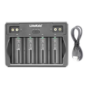 Універсальний зарядний пристрій LiitoKala Lii-D4 – зарядний пристрій на 4 канали для заряду циліндричних акумуляторів і 2 канали для заряду крон 9В зі зручним керуванням однією кнопкою якої можна вибрати струм заряду, з можливістю одночасно розміщувати 4 акумулятори формату D. Автоматично розпізнається нікель-металгідридні та нікель-кадмієві акумулятори, що має 4 + 2 слотів для заряду і може одночасно заряджати від 1 до 4 циліндричних акумуляторів різного хімічного складу і практично всіх типорозмірів акумуляторів АА, ААА, С (R14), D (R14), D , 16340, 18350, 18650, 21700, 20700, 26650, 32700 та інші. Також має два слоти для заряду акумуляторів у форматі 6F22 крона.